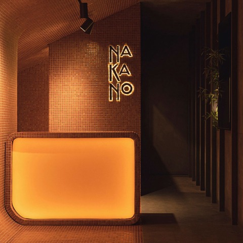 The bar marks the private area of the takeaway, which includes the kitchen, toilets and storeroom, clad by the same stoneware as the walls. In addition, an orange backlit methacrylate contributes, together with the NAKANO signs, to generate an image of oriental sophistication. A project with a great expressive charge that allows aspects of Japanese life to be transferred so that the visitor is impregnated with the experience while enjoying the gastronomy.