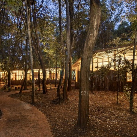 Urko Sánchez Architects used the morphology of the forest to their advantage. He therefore takes advantage of the spaces created naturally by the forest to locate the classrooms, which form a single block interwoven by the trunks and vegetation of the site. Their soft, organic forms create a spiral organisation similar to that of the Maasai manyatas, the traditional dwellings of the Maasai, a tribe in southern Kenya, and accentuate the connection with the environment.