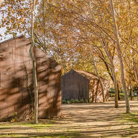 The simple geometry used to resolve these two small constructions sprang from the desire to recover “small architecture”, a look to the essence, something that means shelter to everyone. Two small buildings that, through discreet placement among the existing tree-lined area, easily resolve the functional programme and generate a new rest space between them.
