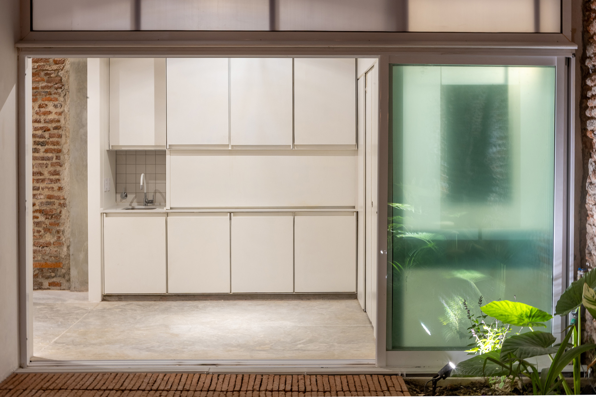 A1486 is developed on a lot between party walls in a consolidated urban fabric of the Chacarita neighborhood.