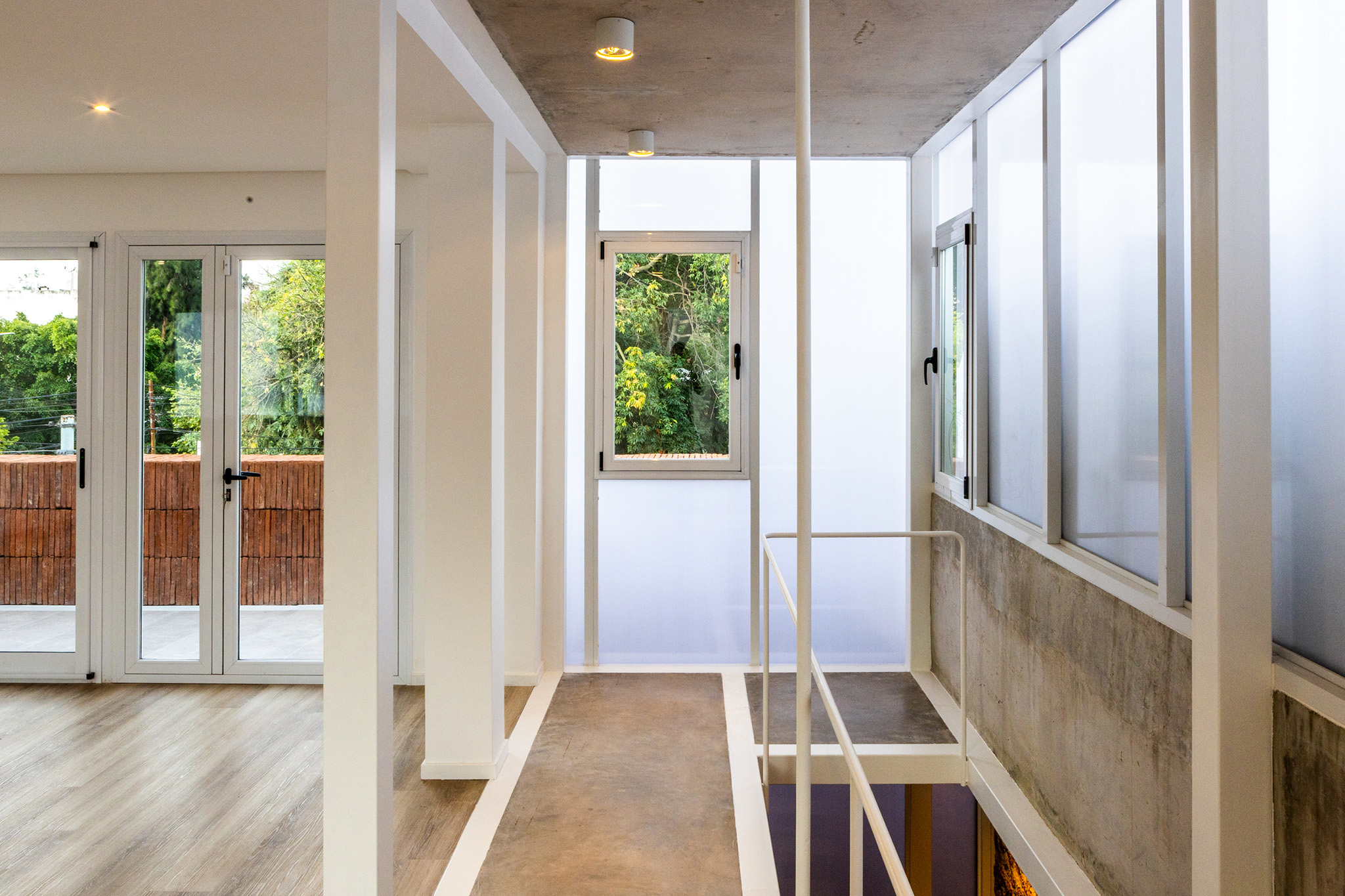 The interior textures designed by Arqtipo are the result of a strategic combination of brick and a new white metal structure that facilitates a dialogue with the existing building. Far from being imposing, the metal staircase is presented as a lightweight, sculptural element that integrates harmoniously into the home.