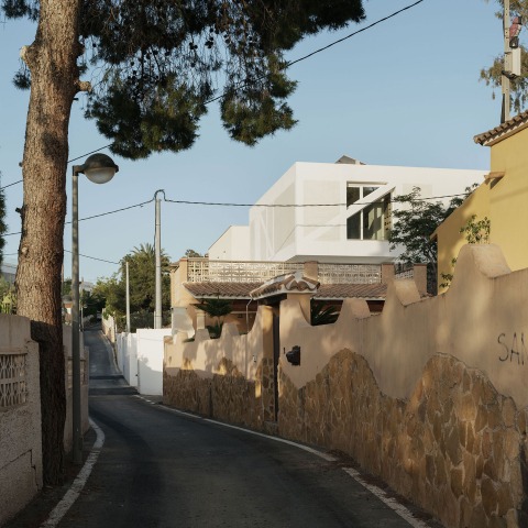 It was this image of the client that also introduced the third story. White has practically become the main aesthetic reference on the Costa Blanca, which has seen how in recent decades imposing and aseptic, cubic, pristine, and super-white single-family dwellings have been progressively installed. The client, in fact, a victim of this other imagination, imposes white as a starting condition. Hence the opportunity to initiate another line of research in the studio: the More Than White Houses, a series of single-family dwellings installed on the coast that seek to escape from the pristine, cubic white as a predetermined solution. This is why, in conjunction with the aforementioned, the white is complexified and nuanced in a painted structure that is made explicit, matte brickwork, satin-finished joinery, or vitrified lattices... but all in white, of course.