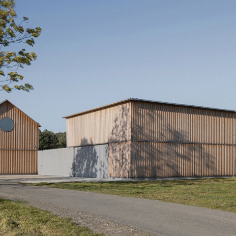 The golf resort in Ostravice is known for its unique location, offering views of the Beskydy Mountains – especially their highest peak Lysá Hora, the difficulty of the game and, last but not least, the quality of the course. And a well-maintained course cannot do without a good maintenance facility, which is a condition that the existing one, housed in a former agricultural area, could no longer meet. As a site for the new maintenance facility, the investor chose the remaining land in the shape of a triangle separated from the course by the Stříbrník Stream. This site is also near the planned housing and accommodation development. From the original expectation of a utility facility designed as a standard metal storage hall, considerations about the aesthetics of the building, its arrangement, and its relationship to the broader surroundings began to shift in a different direction. Our objective was to contribute to the cultivation of development in this landscape by employing the scale and aesthetics that follows from it. At the site's foundations stood our endeavour to follow the local craft traditions and create a set of buildings whose design would not become a thorn in a side to the future residential development and an eyesore to the neighbourhood. Thanks to its three-object layout design, the resulting project is a definition of a farmyard. It represents the focal point of the whole site while hiding the everyday operation from the public. The farmyard's scheme can be understood as the principal source of inspiration for the whole design. But the overall scheme of the site goes beyond this historical inspiration. It also follows both the logic of the maintenance operation and the desire for the effective use of the plot's shape complexity.