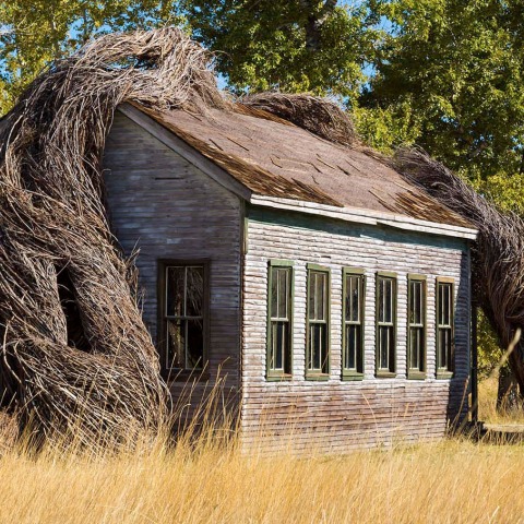 The most difficult task for this project was determining the level of protection needed for the sculpture while creating a building that looked as if it was battered by a century of weather. Dougherty creates ephemeral sculptures out of native saplings, so long-term deterioration of his work was assumed. However, he requested the design team determine a way to protect the interior from water infiltration so as to maximize the potential for its longevity. This is typically not particularly difficult, but when replicating a more than 100-year-old, deteriorated schoolhouse, the task becomes significantly more challenging.