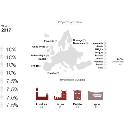 A third of the works selected tackle the challenge of contemporary architecture in relation with built heritage, in line with the priorities of the 2018 'European Year of Cultural Heritage’, which include the management of the historic urban landscape. It is also very significant that a third of the work tackles the contemporary challenges of housing.
