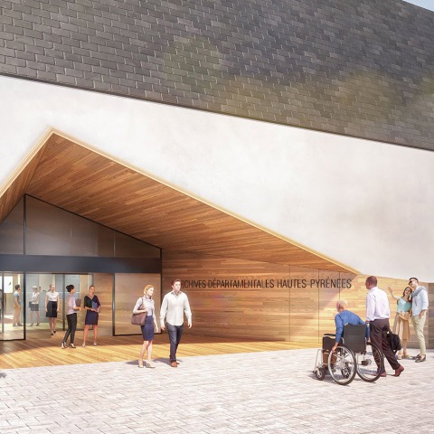 The Department of Hautes-Pyrenees called a public tender on December 2019 for the drafting of the project and the construction management of the Archive facility of the Department of Hautes-Pyrenees, with the requirement to maintain the central body of the existing historic building, l’École Normale de filles, and the possibility pedestrians crossing through, as they currently do at each to the sides.