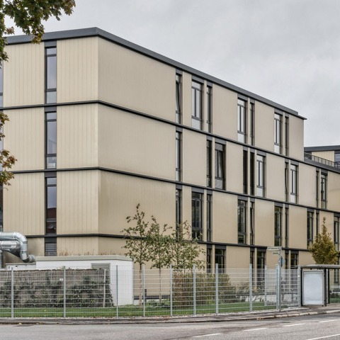 The new "Training and further training centre for electrical installers" is located on the grounds of the industrial complex of the energy supplier Netze BW in Esslingen am Neckar (Stuttgart) on the Neckar river. The school was born out of the need to create a building that would bring together the apprenticeship workshops that were scattered throughout the industrial fabric.