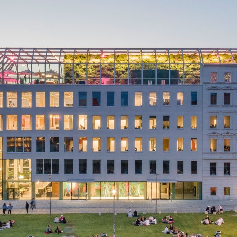 MVRDV has completed construction of Concordia Design, a mixed-use building containing co-working spaces, an event venue, a food hall, a café, and a rooftop terrace on Słodowa Island in Wrocław, Poland. The project is a renovation and extension of a 19th-century listed building, retaining the façade of the existing building and adding a contemporary extension to create a focal point for the neighbouring park and a destination that will enhance the experience of the island for visitors.