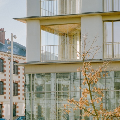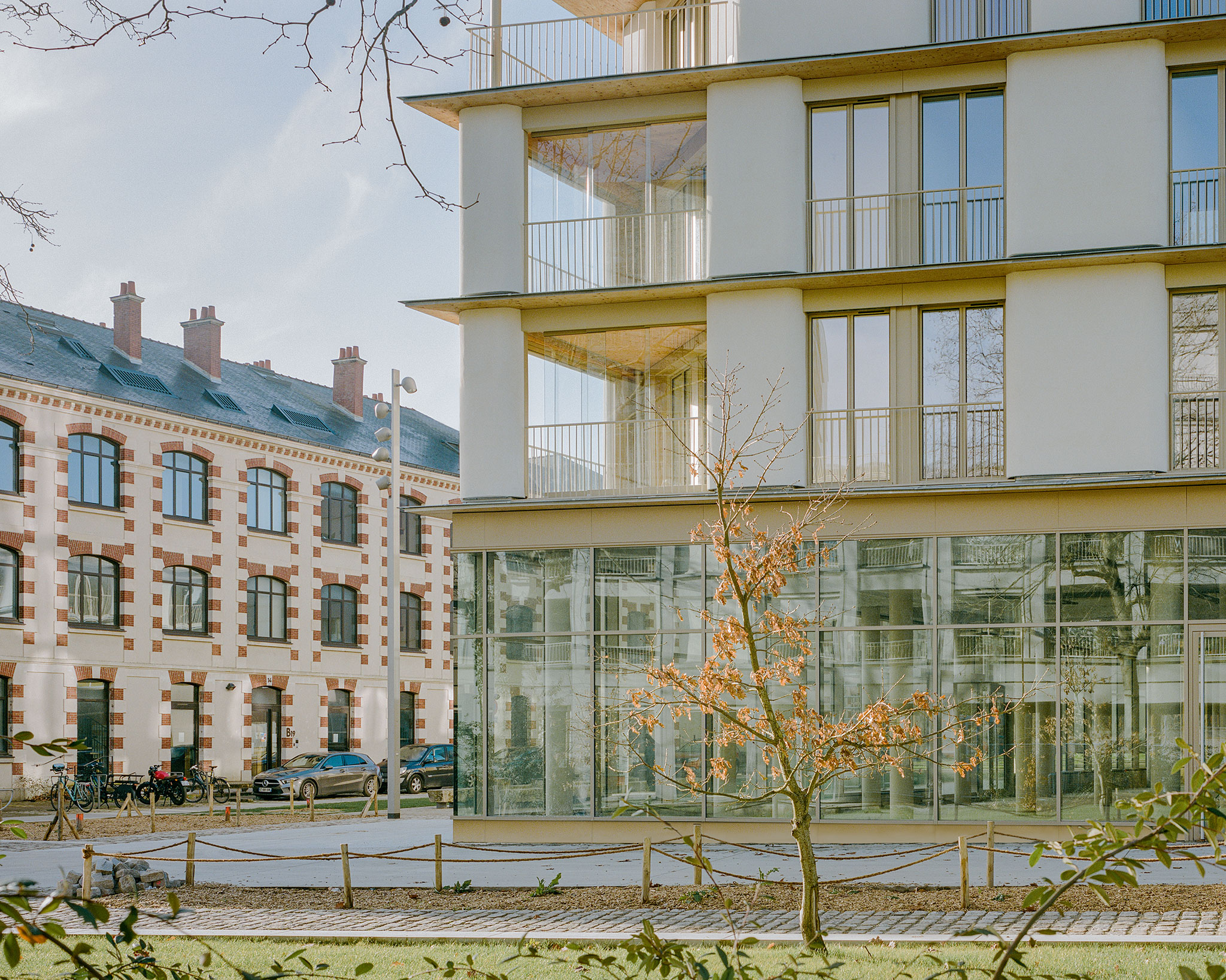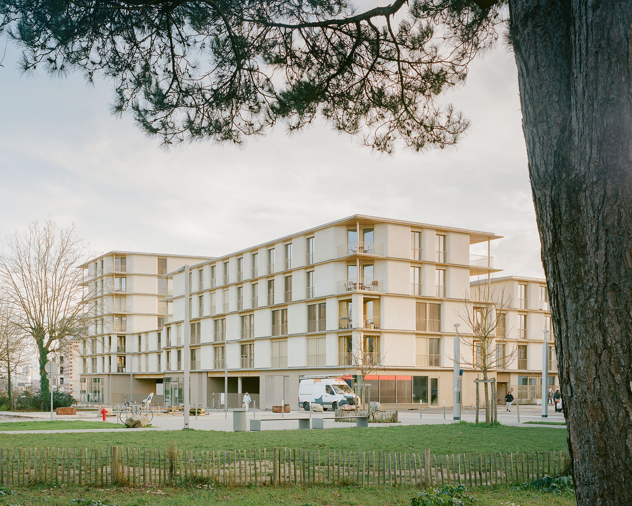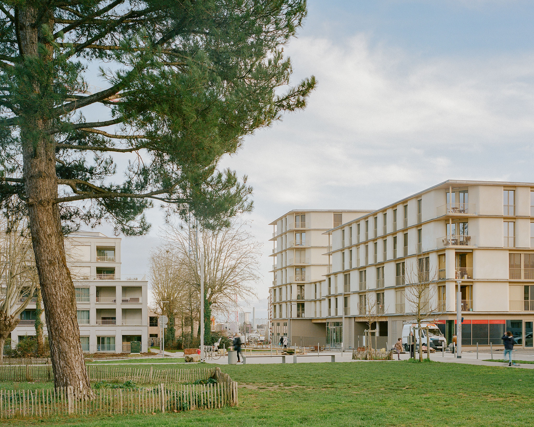 In the centre of Nantes, the transformation of the former army barracks known as the Caserne Mellinet reflects contemporary urban challenges. Situated at the entrance of this neighbourhood composed of six hamlets, the flats completed by Ramdam and Palast are part of the Chapus hamlet. This hamlet is the transitional urban feature linking the Saint-Donatien neighbourhood and the heart of the barracks complex. Whilst respecting the intention of urban planners to create a coherent identity between the two areas, the project is first and foremost part of a powerful construction ambition of a wooden structure and mineral façades composed of plastered hempcrete.