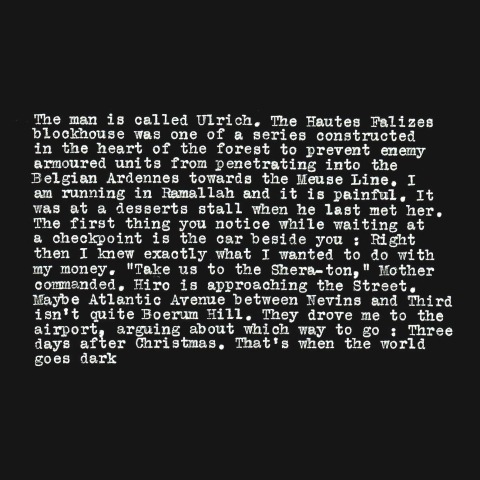 Douglas Coupland, Rana Dasgupta, Julien Gracq, Hu Fang, Jonathan Lethem, Guy Mannes-Abbott, Sophia Al Maria, Hisham Matar, Tom McCarthy, Adania Shibli, and Neal Stephenson