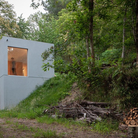 Forja House is a small vacation dwelling, set in a Portuguese village inside the outskirts of the Douro River. The house is defined by a simple gesture, embedded in the slope and facing the privileged valley landscape.