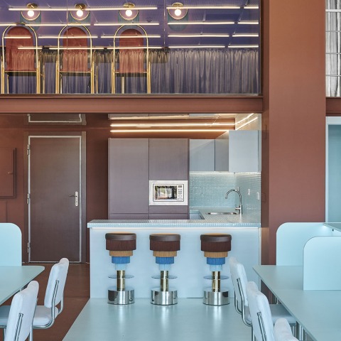 A creative capsule designed by Masquespacio and inspired by the “sexy, lux and fun” concept that offers three meeting rooms, terrace, kitchen, phone-booths... A stimulating space to create new experiences.