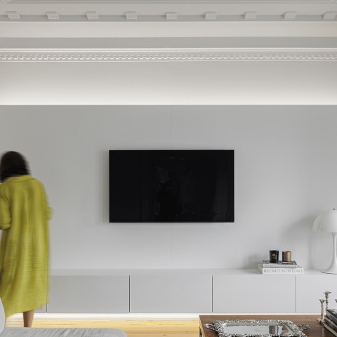 With great areas and well-distributed and illuminated spaces, the project fundamentally focuses on adapting the existing to new contemporary uses, preserving the identity and memory values still present in the apartment. With two independent accesses, the main one, and a service one with direct access to the kitchen, the proposal aims to maintain the accesses and their spatial hierarchy, being proposed the introduction of a small vestibule in the main entrance, the alteration of the kitchen area, and the transformation of the apartment into just two bedrooms, one of which is the master bedroom with a large dressing area and a small office. The project maintains the location of the existing social spaces, preserving their dimensions and therefore their ceilings.