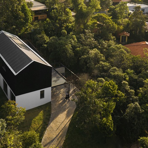 The development of the internal spaces takes place under a gabled roof, adding spatial complexity from a practical solution that refers to the illustrations we used to do in childhood to illustrate a home.