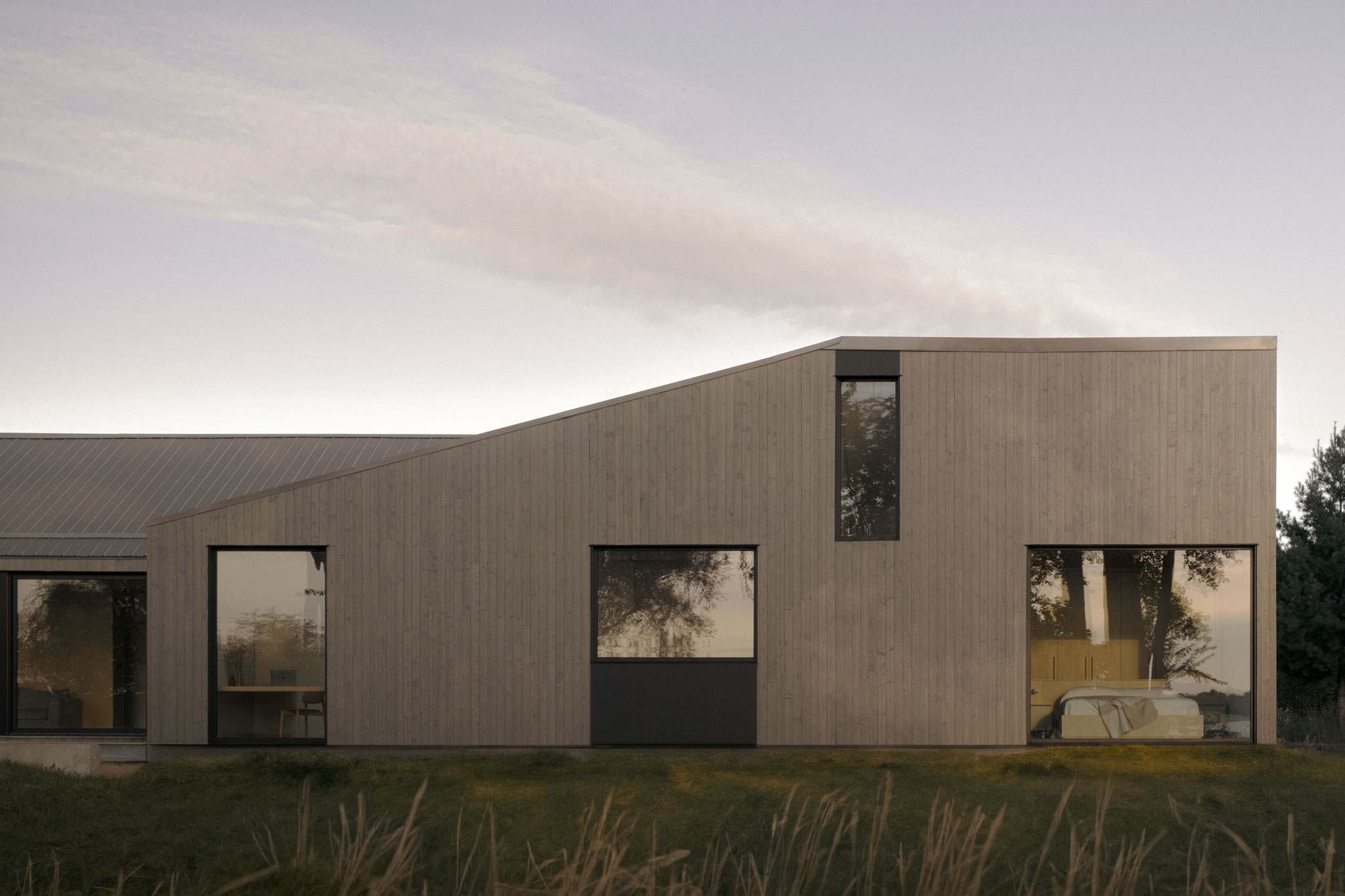 Although the resulting architecture appears complex, its foundation lies in familiar proportions and vernacular forms. Its uniqueness emerges from the interplay of these shapes and their contrast with the landscape, producing a home that attempts to both frame and engage with its natural surroundings.