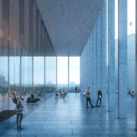 The connection to the “House of Freedom” and the placement of ancillary functions are resolved very well. The jury recommends this project to be executed as it believes that it provides a well worked-out design that meets all know requirements and is robust enough to respond to the inevitable changes that will be needed for the final optimization of the museum concept in dialogue between clients, architects and exhibition designers. Ultimately this proposal provides an elegant architectural image that integrates well into the historic context of the Maidan. The European traditions of Classical Architecture are being reinterpreted into a new language that will let this building stand out as one of the most characteristic museums of our time, leading the new institution of the “Museum of Freedom” into a future that will be highly relevant in the international cultural (and political) discourse.