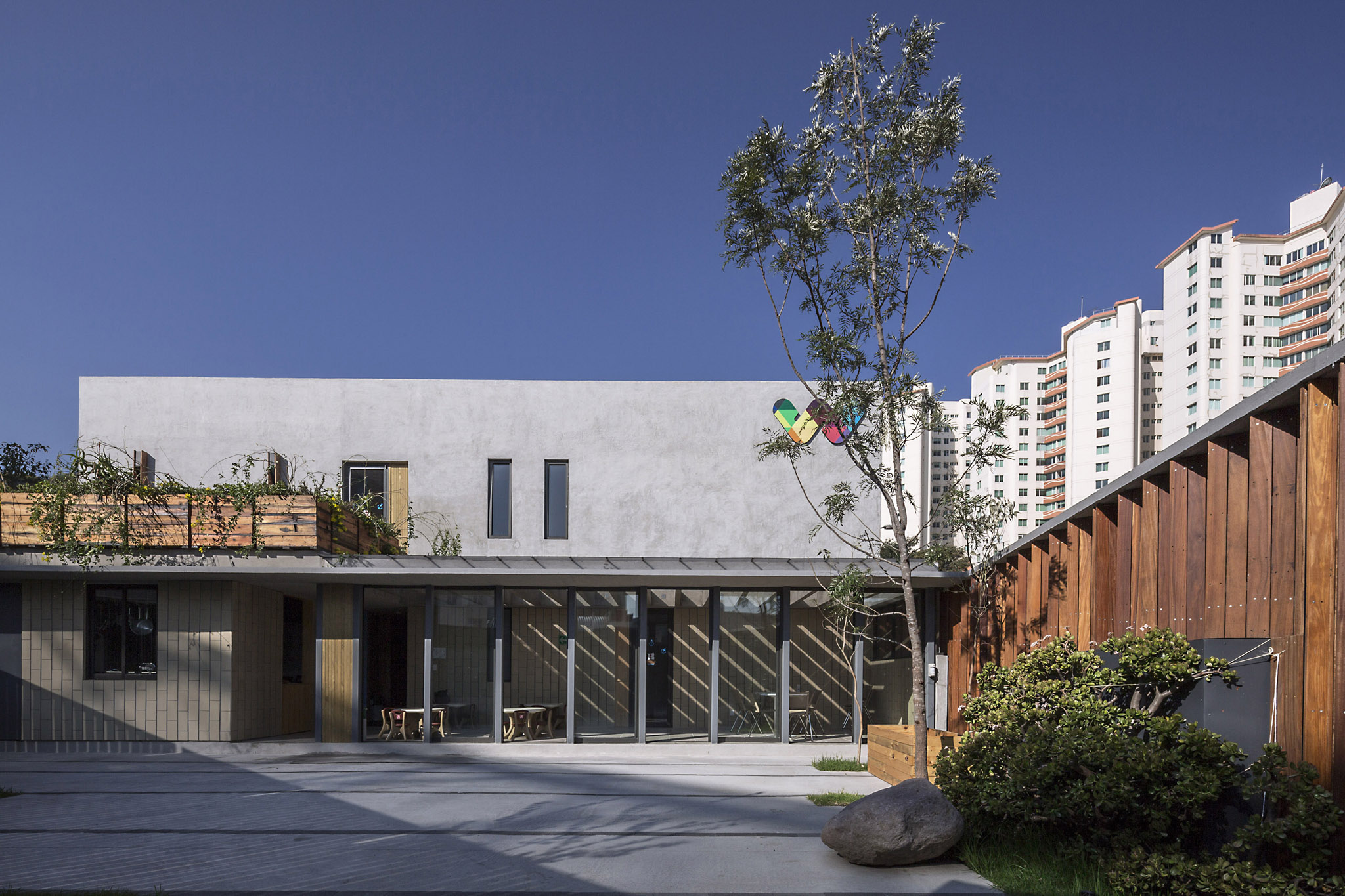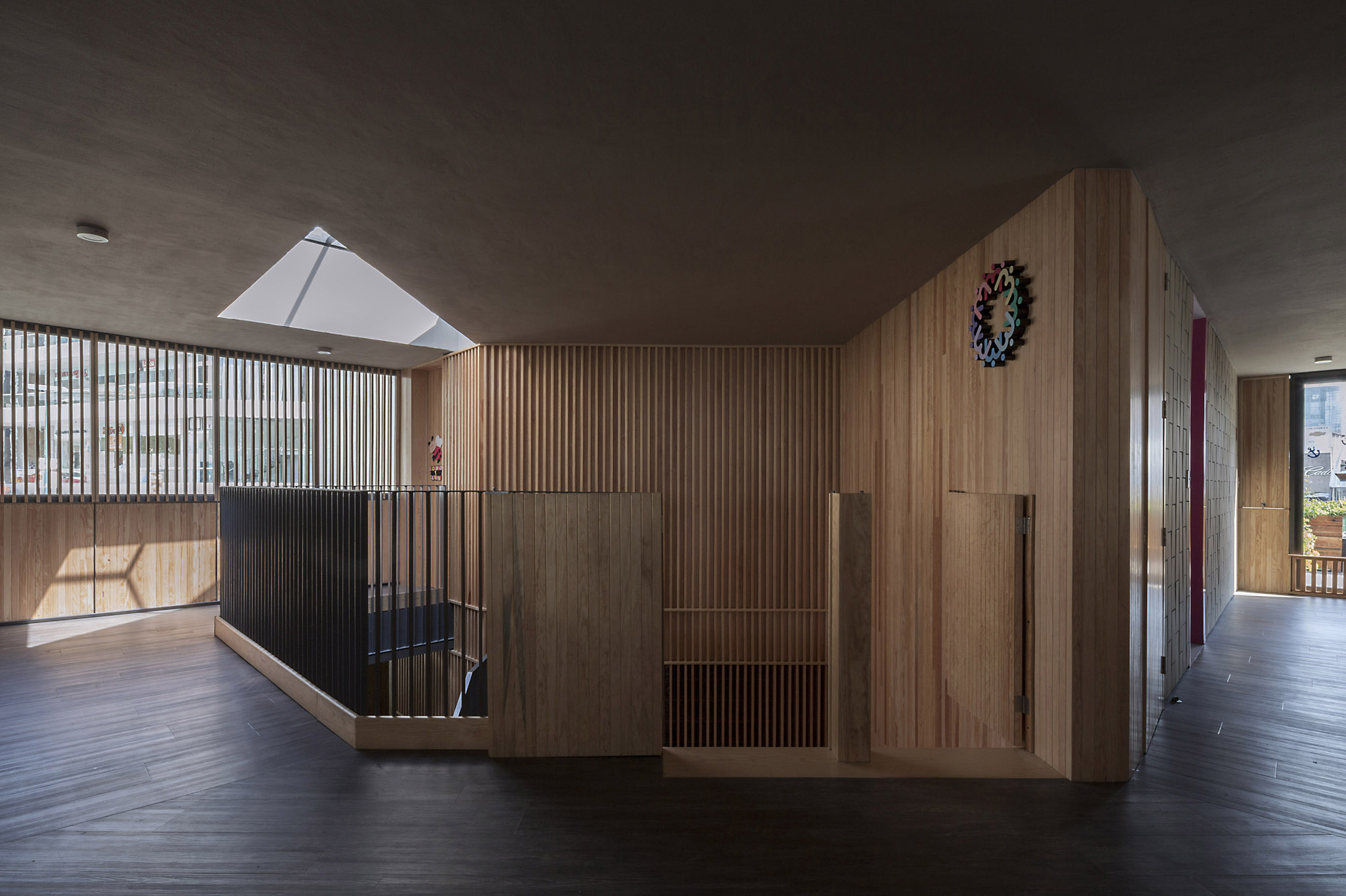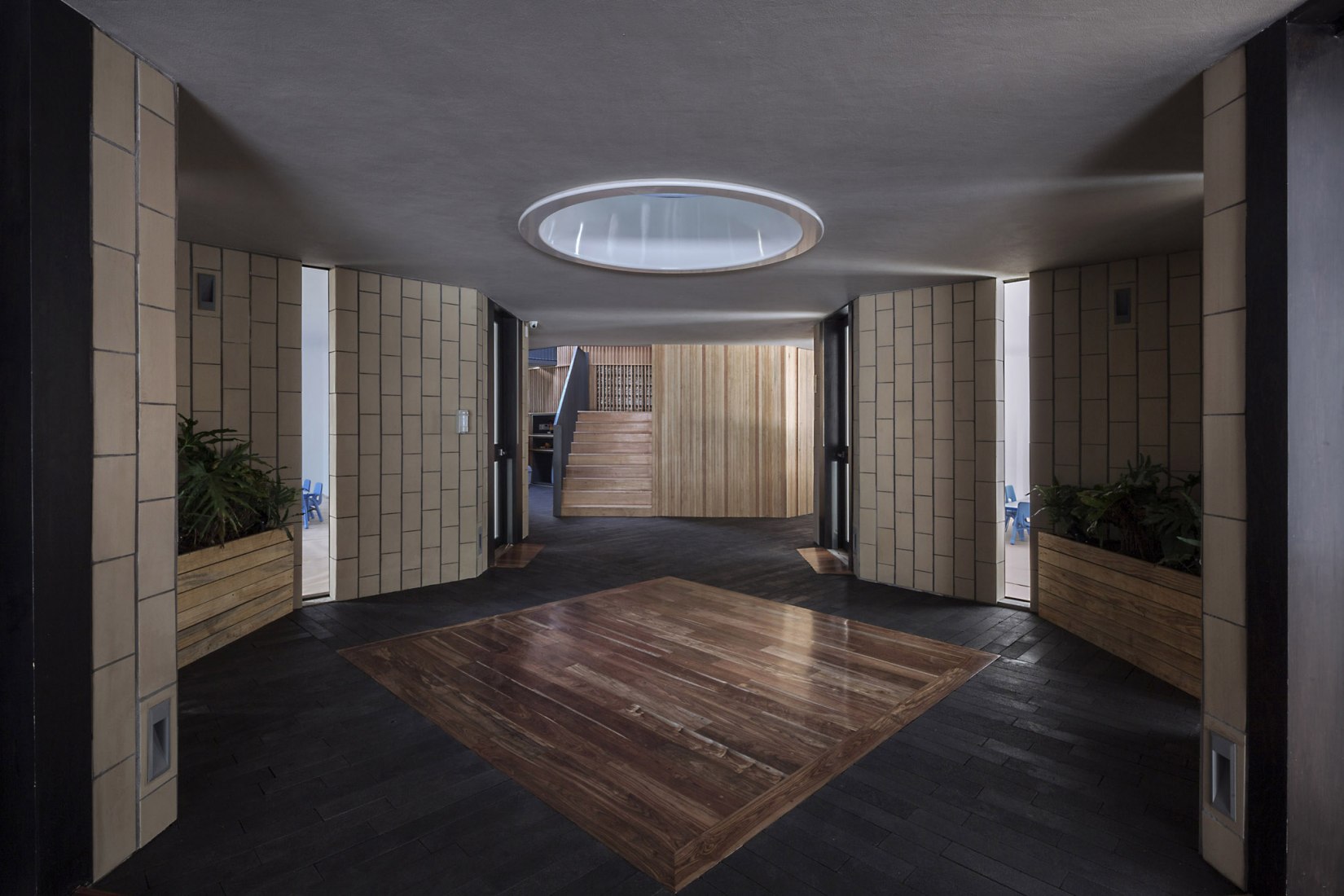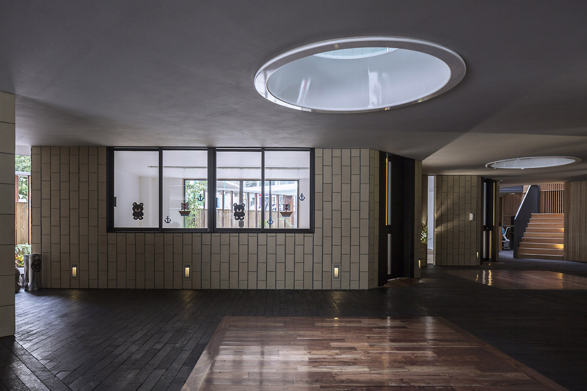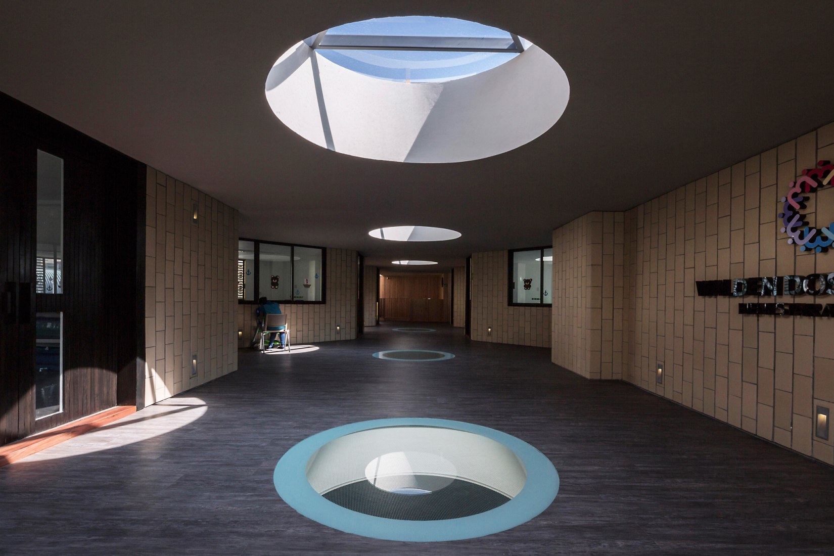 The chosen color palette is meant to contribute to the school´s educational model. It is subtle and simple and it lets children relate its colors to the ones they see natural context like wood, stone, water, vegetation and light, replacing the classic bright and pastel colors found in most schools.