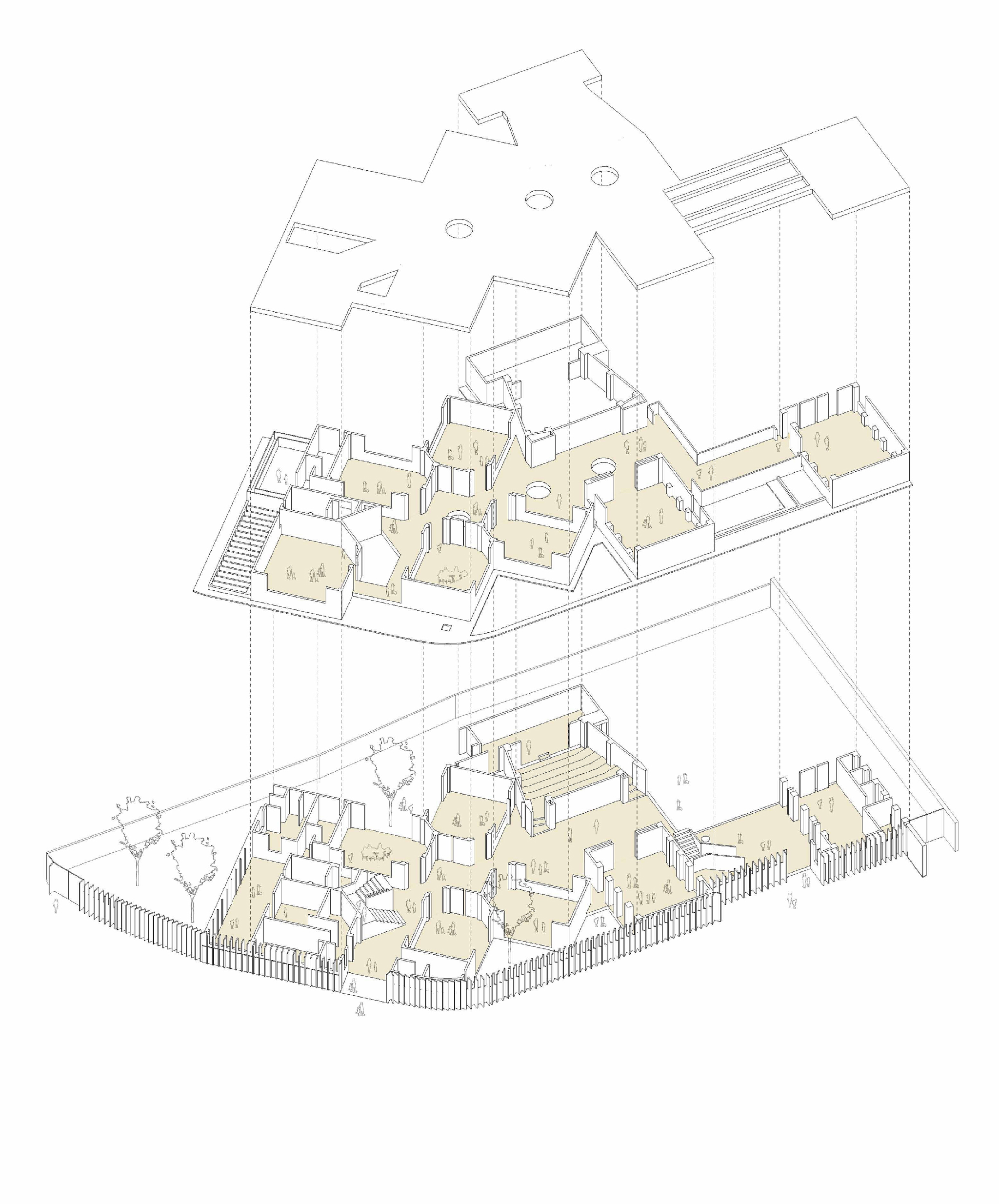 Children are the main character in this project because they are the ones who inhabit the space. They travel across courtyards, halls, classrooms and gardens, weaving the pre-existing spaces with the new ones. These spaces are constantly flooded with natural light, which allows them to transform throughout the day and become different places every hour. Such spaces are replacing old and dark hallways that are now sunbathed gardens that offer a variety of experiences.