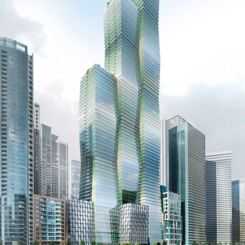Defining a new edge of the city, the Wanda Vista Tower more tightly knits the thriving Lakeshore East community to its environment with unprecedented urban connections. At approximately 1,100 feet in height, and more than 1.8 million sf, this new hotel and residential tower will be one of the tallest buildings in the city and a dynamic new presence on the horizon.