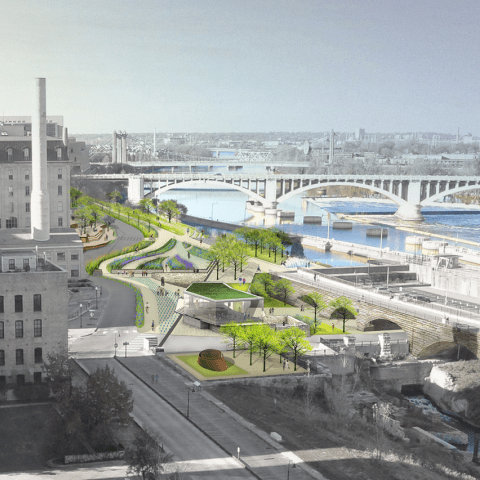 The proposal is a composite of three distinct zones, each defined by an interpretation of historic resources, expression of native ecology and geology and resolves extant circulation conflicts. Along with a strategic use of architecture, occupiable, terraced bluffs make critical topographic connections within the park and beyond to its surroundings. These unique features coalesce to structure a park that could only exist in Minneapolis.