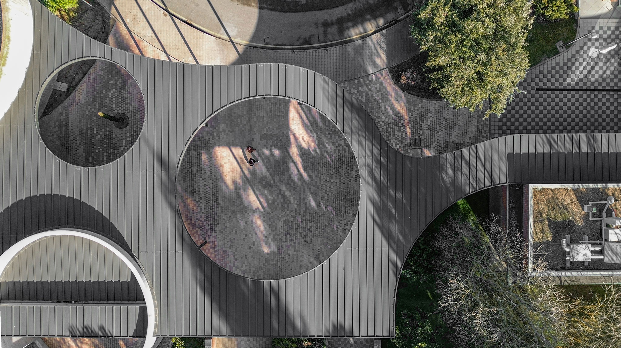 To achieve this, the project incorporates a large metal roof that connects the existing buildings and, at the same time, creates new covered interior and exterior spaces. The currently empty area that begins the path toward the cemetery becomes the new epicenter of the complex: a covered plaza, like a canopy, designed as a welcoming entrance and a place to linger. From this point, covered access between the main areas is guaranteed.