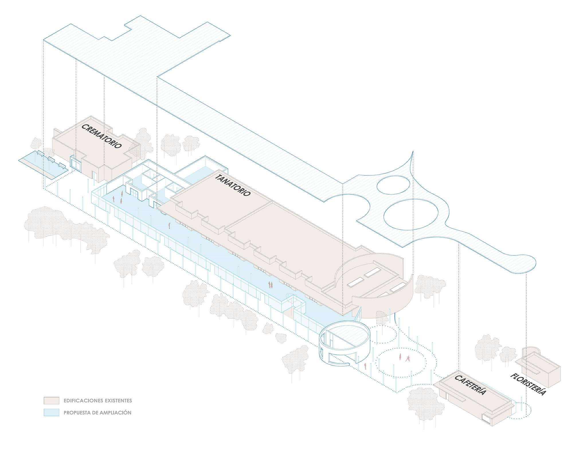 The intervention proposes a comprehensive expansion and renovation of the Las Contiendas Municipal Funeral Home in Valladolid with a clear objective: to transform the current complex, fragmented into independent pieces, into a single architectural unit, reorganizing and enhancing the existing structure to give it a unified feel and a clearer, more efficient function for users and staff. A system of relationships is thus reconstructed, defining a continuous and sheltered route that reinforces the program's complementary nature.