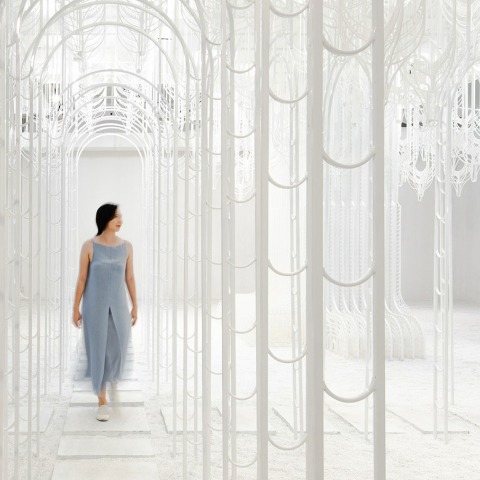Step inside as ‘Eden’ invites you to re-discover how nature can be experienced by magnifying subtle details through its organic structures, transporting you to another world unlike anything you have encountered. An all-white landscape awaits as your senses are treated to the calm & serene environment, akin to being in the grounds of a mythical temple. A pathway covered with crystal-white pebbles leads you through an arched passageway inspired by Victorian-era steel conservatory structures. It’s light, skeletal structure is a nod to the architectural and engineering marvel of the ‘Crystal Palace’; a massive cast-iron structure built to house the Great Exhibition of 1851 in London.
