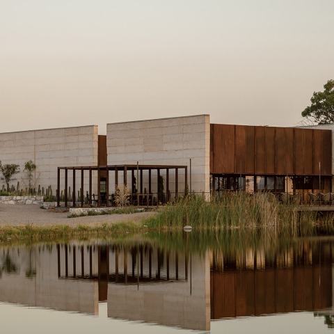 The complex is made up of three buildings and an esplanade for events interconnected by walkways and gardens. A nucleus of bathrooms, winery and boutique, a restaurant and the winery building, tasting room and cellar.
