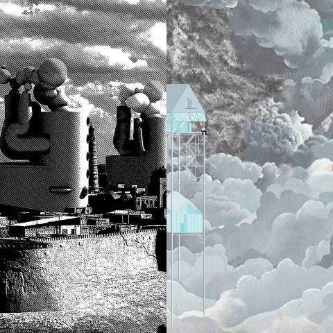 Third Prize goes to Ariane Merle d’Aubigné & Jean Maleyrat, two French architects that met in architecture school, for “Up Above”, an imaginative story of refugees in the sky that build shanties on thin stilts, high in the clouds, to escape oppression, regulations, and inequality on the surface of the earth below.