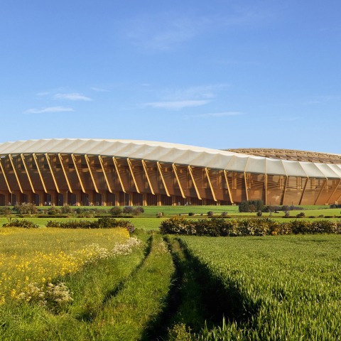 The really standout thing about this stadium is that it’s going to be almost entirely made of wood – the first time that will have been done anywhere in the world. The importance of wood is not only that it’s naturally occurring, it has very low embodied carbon – about as low as it gets for a building material. And when you bear in mind that around three quarters of the lifetime carbon impact of any stadium comes from its building materials, you can see why that’s so important – and it’s why our new stadium will have the lowest embodied carbon of any stadium in the world.