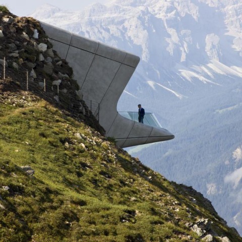 The MMM Corones, which shall be devoted to Alpinism’s discipline, was planned by star architect Zaha Hadid, who is well know for curving forms and elongated structures that avoid right angles. It is for this reason that concrete is the MMM Corones’ dominant construction material, despite creating geometric obstacles that challenged the realm of known possibilities.
