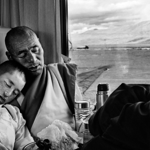 Llegados en el nuevo ferrocarril que conecta Pekín con Lhasa, a veces huyen, a menudo en la noche, a recoger imágenes o algunas confidencias, y otras veces siguen dócilmente el curso balizado que se les había concedido. Nos invitan así a un doble enfoque cuyo segundo, quizás, no es el menos interesante. La impresión inmediata que logran las imágenes de Laurent Zylberman es la de una región bajo alta vigilancia: la omnipresencia de siluetas de policías y patrullas militares en las calles lo certifican; una región invadida cada día por millares de inmigrantes Han que se vuelcan en las estaciones, pioneros de este nuevo Far West, llegados en busca de fortuna y trastornando por su número la demografía del país. Pero al compás de las visitas, otra visión se dibuja: la de un país en profundo y brutal cambio económico que trastorna un método de vida milenario y el frágil equilibrio ecológico de un altiplano hasta ahora poblado por nómadas. Canales de riego, carreteras, centrales hidroeléctricas, explotaciones mineras, aeropuertos y también escuelas, universidades, hospitales dan prueba de la colosal inversión china para hacer del Tíbet una región moderna y rentable.