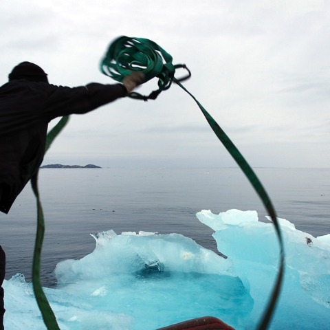 Transporte.- Recogido por los buzos y trabajadores portuarios de la Royal Arctic Line , contratados por Group Greenland/ Greenland Glacier Ice, y enviado en cuatro contenedores refrigerados en un buque portacontenedores de Nuuk a Dinamarca.