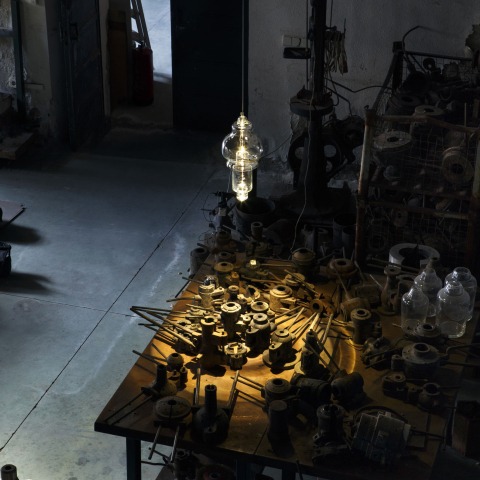De entre ellos se seleccionaron 22 moldes para formar una colección de trece lámparas de suspensión. Cada molde tiene su propia identidad y procedencia. Algunos han revivido tras un aletargado descanso y han vuelto a funcionar para homenajear su historia y para crear positivos de vidrio transparente que configuran la línea. Están fabricadas de manera tradicional utilizando la técnica de soplado con caña.