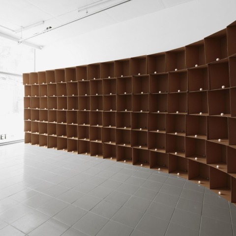 ""138 dc-motors preparados, bolas de algodón, cajas de cartón 40x40x40cm, 2011"" METALOCUS.