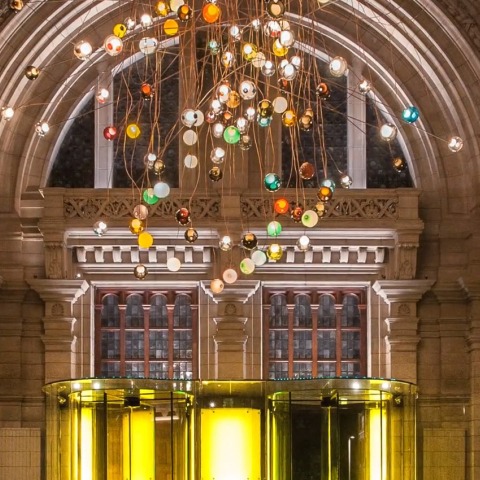 Vídeo time-lapse (a intervalos de tiempo) de nuestra instalación en el Victoria & Albert Museum dentro del Festival de Diseño de Londres. Presentamos la enorme lámpara 28.280 hecha a medida para el vestíbulo principal del museo. La instalación descendía por el hueco y atravesaba todo el edificio, alcanzando una altura de más de treinta metros. Las intenciones de la instalación eran, por un lado, celebrar la monumental altura libre del edificio, utilizando la luz para cristalizar la potente experiencia fenomenológica del espectador. Por otro lado, realizar la investigación más ambiciosa que se ha hecho hasta hoy de una técnica innovadora de soplado de vidrio. 280 de los 28 colgantes caen por el hueco de treinta metros de alto, sujetos por un sistema nuevo de suspensión, algo raro y pesado, hecho de cobre y que tiene tanta o más presencia que el vidrio que sotiene. La instalación siguió a nuestra investigación sobre los procesos de fabricación y supone un testimonio de la trayectoria de Arbel como creador de formas.