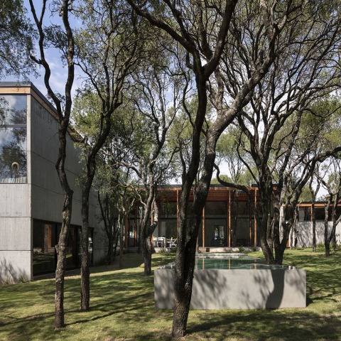 Una vivienda de gran tamaño que se acomoda con el objetivo de preservar los arboles existentes. En un amplio terreno de geometría irregular, de casi 2500 m², con un frente angosto hacia la calle, y un frondoso bosque autóctono, se implanta la casa en el fondo del mismo permitiendo abrir sus espacios hacia la buena orientación y el bosque.