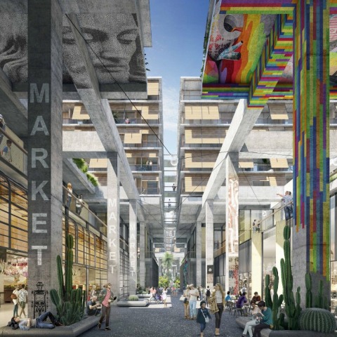 El proyecto incluye dos torres de 58 pisos, 1,96 millones de pies cuadrados de espacio residencial, así como tiendas, oficinas, un par de hoteles, espacio para una escuela charter y estacionamiento, la mayor parte de él subterráneo, para más de 3.400 coches. Estos elementos, más dieciocho años y dos mil millones de dólares, constituyen los elementos fundamentales del desarrollo mixto de la ciudad de Herzog & de Meuron "6 AM". Comenzará su primera fase de construcción en 2018 en el distrito artístico del centro de LA y no se terminará hasta que sus arquitectos tengan 85 años de edad.