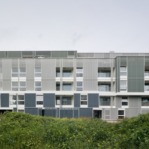 La disposición volumétrica permite generar una fachada urbana hacia el exterior del conjunto, mientras que las fachadas interiores se relaciona con la idea de pabellones sobre un jardín. El proyecto se construye con la combinación de muros de hormigón armado y fachadas con paneles de acero lacados.