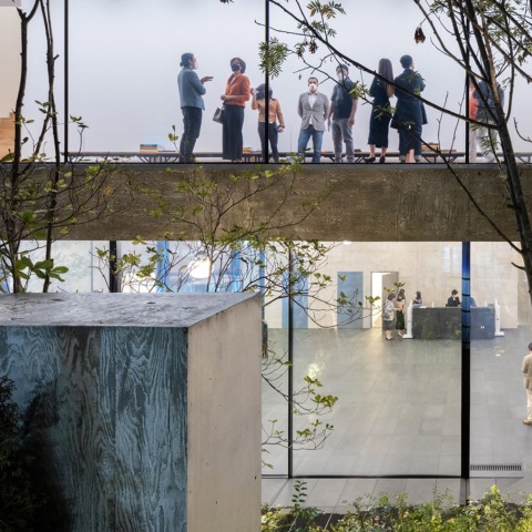 En el lado oeste del edificio, la rampa para automóviles se trata como un volumen escultórico. La curva de la rampa descendente crea una abertura en el techo del espacio de exhibición subterráneo, conectando esta galería hundida con la actividad, el sonido y la luz a nivel de la calle. Con sus paredes de hormigón, este espacio en forma de cueva contrasta con los acabados reflectantes de pan de plata que recubren el interior de la rampa y el espacio de estacionamiento debajo. La rampa gira en espiral alrededor de un vacío de triple altura y define la geometría de la gran escalera que actúa como un umbral y un auditorio para proyecciones y conferencias, que conduce a las galerías del segundo piso. Una mezcla experimental e inesperada de espacios de arte, oficinas y áreas públicas se despliega por encima y por debajo del suelo, creando un nuevo complejo urbano que invita al público a involucrarse con el arte contemporáneo en Seúl.
