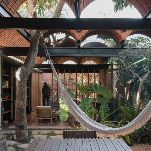 Los arquitectos han decidido conservar un árbol de mango situado en el centro del terreno que separa los dos bloques de los que se compone el proyecto. Esta es una práctica común del estudio, el respetar el entorno y en especial los árboles del mismo, como hicieron en su proyecto Caja de Tierra.