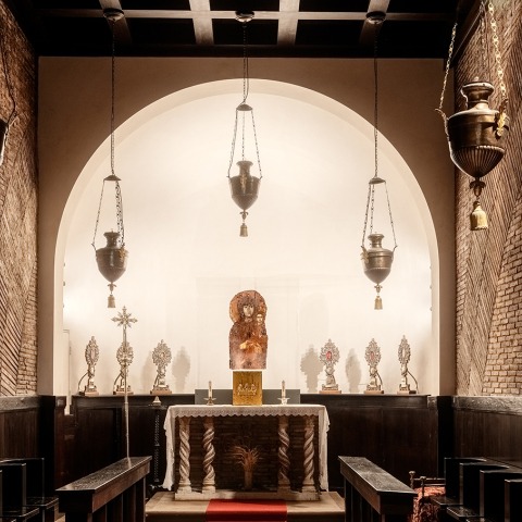 Todas las salas involucradas han sido reinterpretadas como parte de una secuencia narrativa centrada en la percepción de esta compresión espacial. En la nueva distribución, todo se orienta hacia la exposición. El proyecto evita deliberadamente la separación convencional entre espacios de acceso público —como las salas de exposiciones en la planta superior o las destinadas a funciones religiosas en la planta baja— y espacios de servicio para el personal —como baños, almacenes y pasillos—.