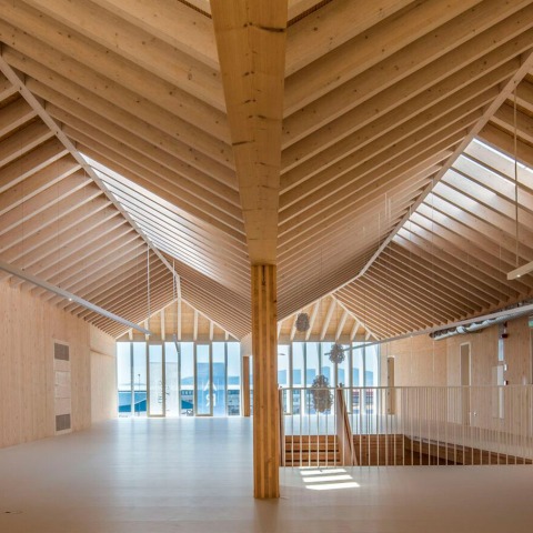 Los forjados se resuelven también con madera contra laminada, suelo técnico compacto y pavimento de pvc flotante. Se completan en determinadas zonas con techos acústicos semi directos. Las alturas originales, que el plan especial conserva, son más propias de vivienda que de edificio dotacional, por lo que evitamos en la medida de lo posible la aparición de falsos techos, dejando las instalaciones vistas o ubicándolas en los huecos existentes en las medianeras.
