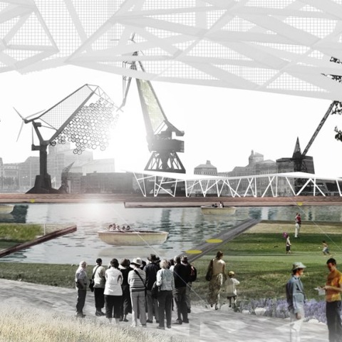 Re-introducir el río Göta a los ciudadanos a través de una re-generación urbana; el río visto como un gran sistema verde conectado al paisaje existente. El proyecto consiste en una serie de intervenciones de distintas escalas en la ciudad de Gotemburgo que pretenden regenerar el tejido urbano actualmente fracturado (frente del río-estrategias de usos mixtos), crear una ciudad más cohesionada, conectar los espacios verdes, re-introducir el río a los ciudadanos y, reutilizar algunas estructuras del patrimonio industrial de la ciudad como elementos paisajísticos activos de control ambiental y descontaminación mediante un proceso de extracción de residuos tóxicos del lecho del río y un sistema de purificación del aire a través de procesos químicos. Algunas de ellas serán como catalizadores regenerativos en la silueta de la ciudad y también informarán a las autoridades de posibles cambios en los niveles del río para prevenir inundaciones o crecidas bruscas. Otras grúas se transformarán en nuevos aviarios para fomentar la biodiversidad o incorporarán plantas que crezcan como en un "Jardín vertical".