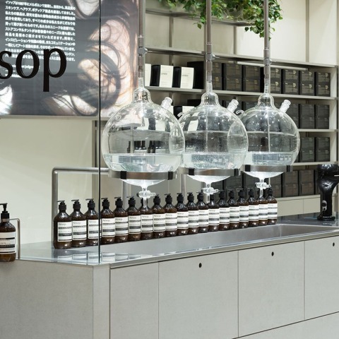 En el diseño de la tienda el equipo de Torafu Architects se enfrenta a un espacio reducido de algo menos de 25 m² en el que presentan los productos de la empresa Aesop haciendo uso de un mobiliario muy cuidadosamente escogido. Las texturas y colores empleados pretenden poner de manifiesto el corte científico del espacio, donde el rigor se vuelve protagonista.