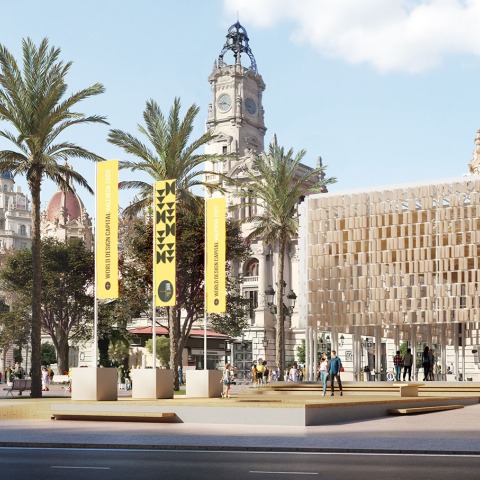 El pabellón ha sido proyectado por Miguel Arraiz, arquitecto y director de proyectos de València Capital Mundial del Diseño 2022, junto a la firma Arqueha Arquitectura y Urbanismo, responsable del desarrollo técnico con el asesoramiento del estudio de interiorismo Cosín Estudio.
