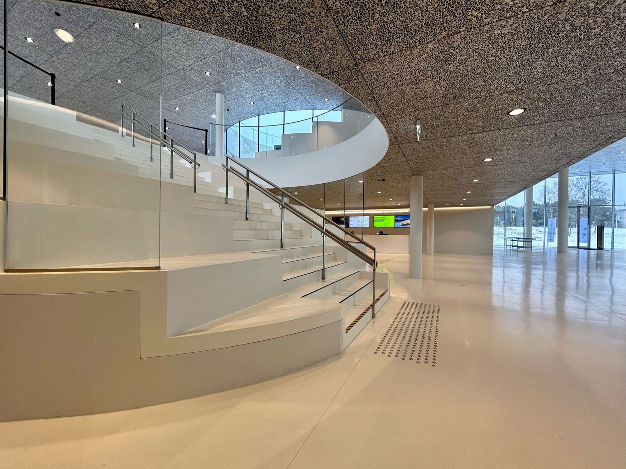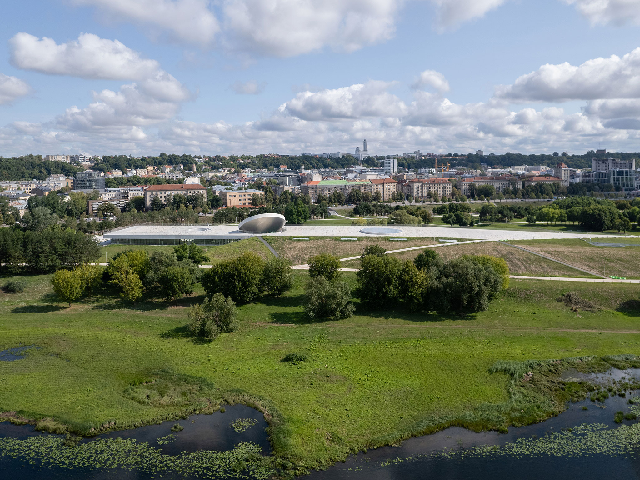 Ubicado en la isla Nemunas de Kaunas, el Museo de la Isla de las Ciencias emerge del paisaje como una prolongación del parque. En lugar de añadir un nuevo objeto, el edificio se adapta a la topografía de la isla, con una cubierta inclinada reflectante que se convierte en un parque público. Bajo él, 10.700 m² albergan exposiciones, laboratorios y espacios de aprendizaje dedicados a las ciencias ambientales; las aberturas y los espacios diagonales del edificio conectan la ciudad, el río y la naturaleza a través de la luz, el aire y el terreno.