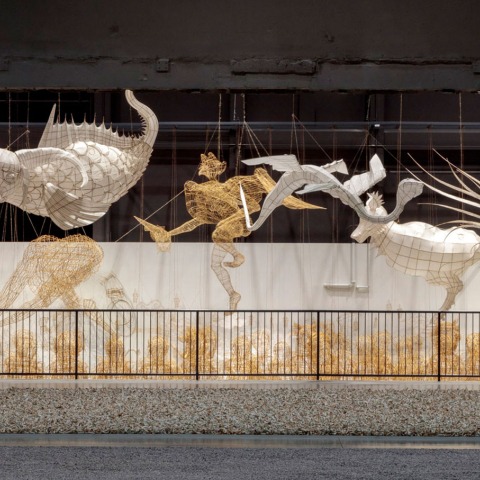 Suspendidas alrededor de la instalación de la embarcación hay figuras hechas de bambú y seda. En 2015, Ai comenzó a crear estas figuras basadas en criaturas míticas del Shanhaijing, o Clásico de las montañas y los mares. El texto clásico chino compila geografía mítica y mito; Las versiones de Shanhaijing han existido desde el siglo IV a. C. Estas obras están diseñadas en Weifang, una ciudad china en la provincia de Shandong, con una tradición de fabricación de cometas que se remonta a la dinastía Ming (1368–1644).