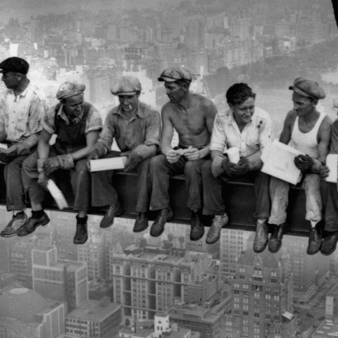 Era conocida como el retrato de Lewis Hine de los 11 trabajadores durante la Gran Depresión, comiendo a lo largo de una viga en el edificio en contrución del Empire State.
