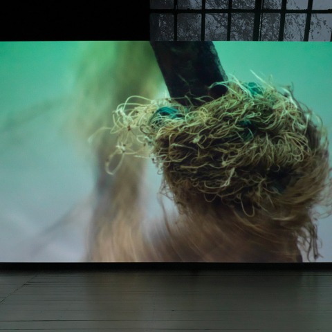 El recorrido por la exposición comienza con la parte central de El bosque soberano, La escena del crimen (2011), un vídeo monocanal de 42 minutos que presenta los impresionantes paisajes de Odisha antes de su destrucción.